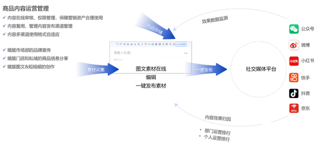 企业的全域运营能力对企业内部的商品资料管理,提出更高的协同和处理要求。比如商品的图文视频的存储管理、素材数据标签化、海报/视频在线设计、商品内容多渠道分发投放、DAM多方协同,任务与协作机制,移动端审批,数据洞察与反馈,客服/导购的产品知识库等领域,提供了全面的商品数字化解决方案。数字化管控系统从商品属性字段延伸到图文/视频,主图/活动图,商品搭配,促销活动,商品创意内容制作与分发,混合云存储管理,客服导购产品知识库,构建统一的商品信息与资料管理工作台。同时提供了数字资产管理(DAM),智能设计中心(DC),商品运营策略中心等模块,从更全局的角度管理商品生命周期中的各阶的资料。结合任务引擎和协作机制,串联电商部门各个角色的工作,实现对商品图文资料的可视化任务管理,赋能电商负责人更加全面且精细得管理全局状态,做出精准决策。